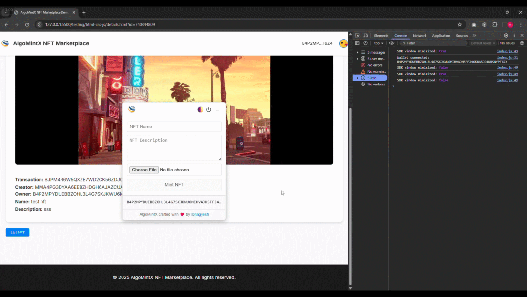 AlgoMintX – Plug-and-Play NFT Marketplace SDK